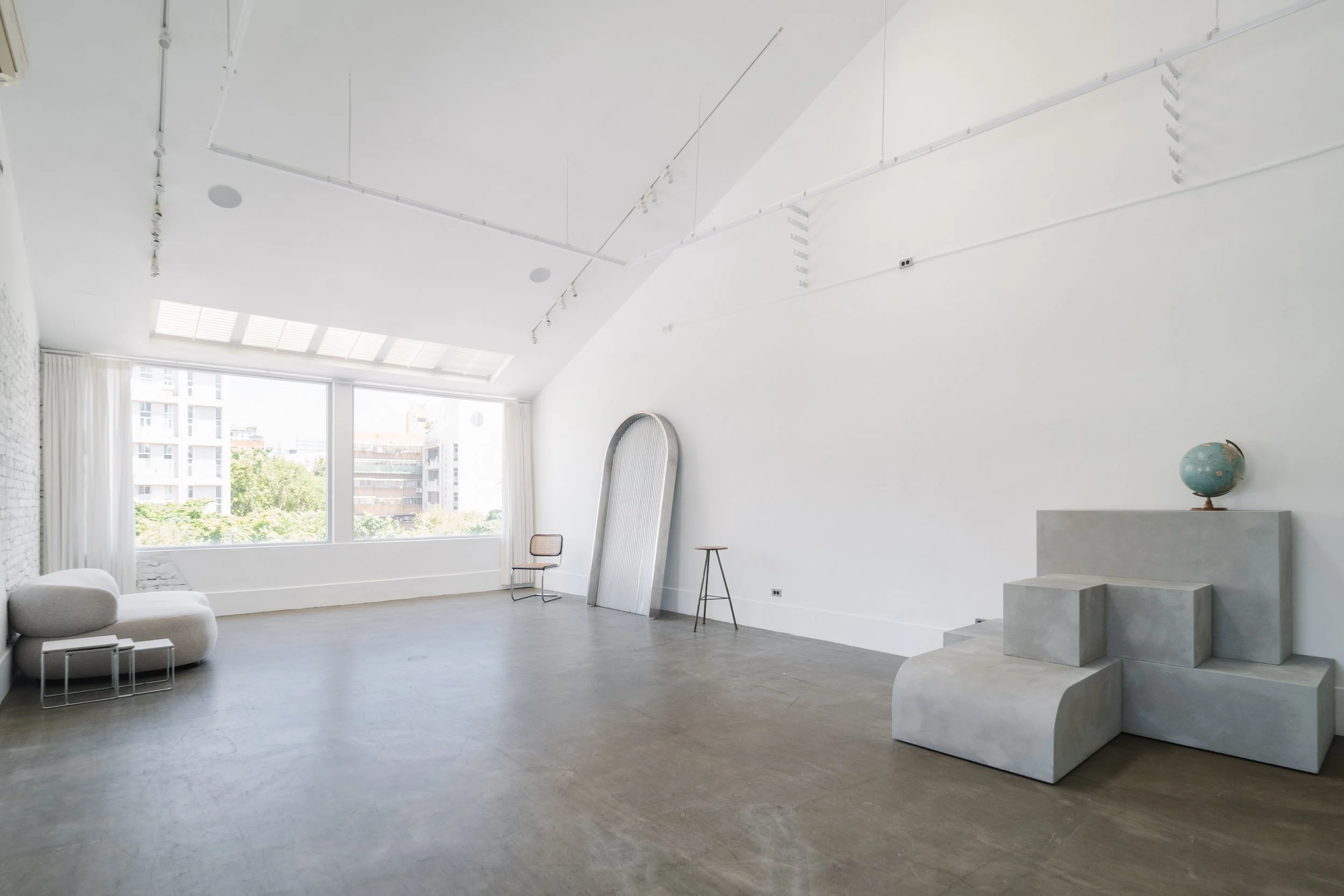 獨有挑高6M的斜屋頂,整面開窗的自然採光。空間約 30 坪,另有儲倉室,不論媒體公開及私人活動皆合適。鄰近忠孝新生捷運站。